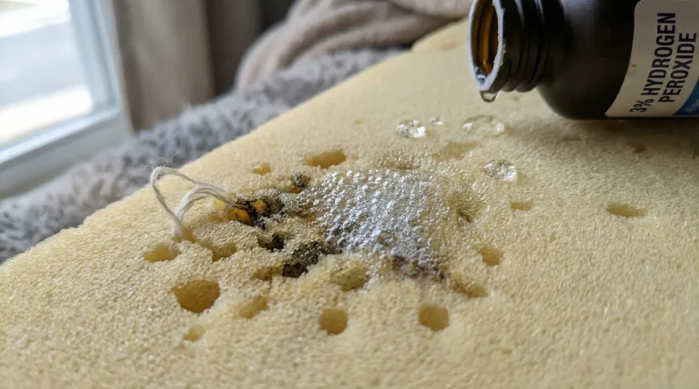 Oksijenli su yatak süngerindeki sararmış ter lekelerini fırçalamaya gerek kalmadan siliyor.