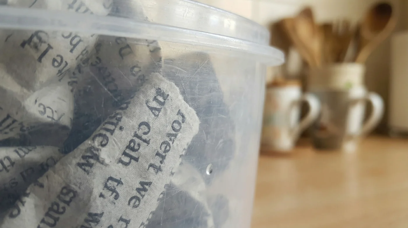 - Buruşturduğun bu kağıt toplarını kabın içine yerleştir ve kapağını hava almayacak şekilde sıkıca kapat.