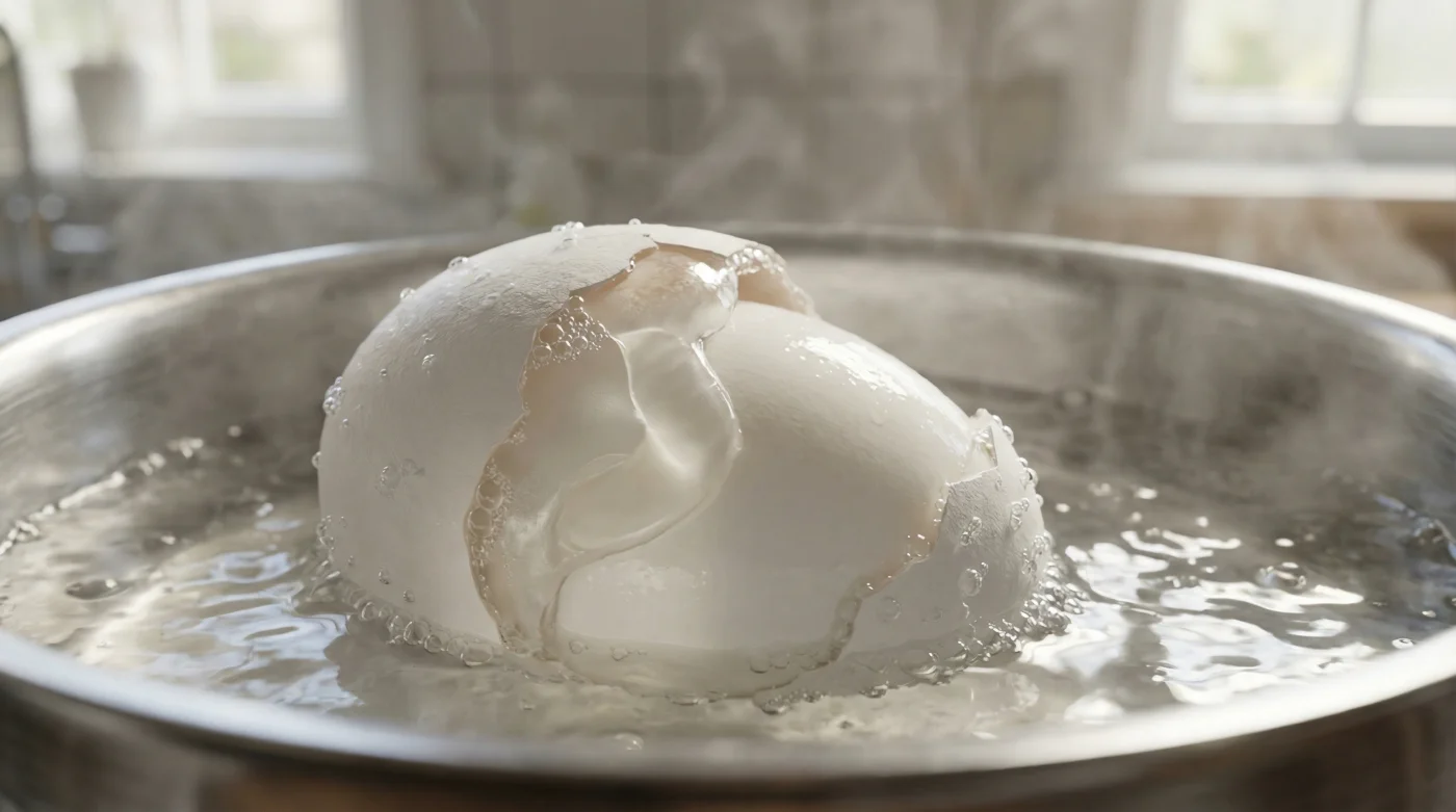 Bu inatçı zarı parçalamak için suyun pH değerini artırman asıl anahtardır. Kaynayan suyun içine ekleyeceğin sadece yarım çay kaşığı saf karbonat, suyu anında güçlü bir alkali ortama dönüştürür. Bu alkali banyo, protein bağlarını hedef alıp zayıflatarak zarı fiziksel olarak yavaşça eritir. Yumurta piştiğinde kabuk artık iç dokuya tutunamaz, adeta üzerine birkaç beden büyük gelen bir palto gibi gevşer ve içi boşluklu bir yapıya kavuşur.