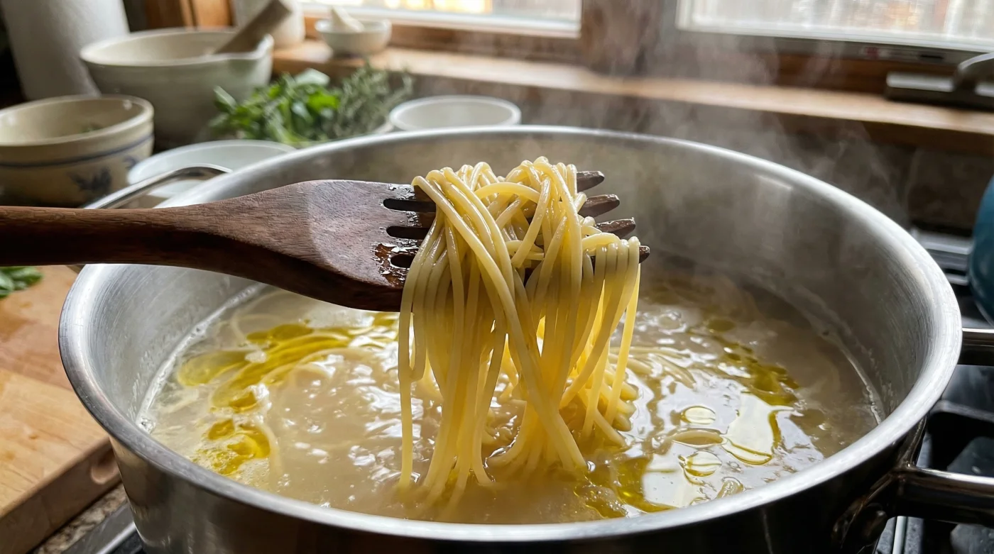 Ocağın üzerindeki derin çelik tencereden gelen tok fokurdama sesini dinliyorsun. Mutfağın camı yavaşça buğulanırken, yan taraftaki tavada usulca kavrulan sarımsağın kokusu odayı dolduruyor. Kaynayan suya cömert bir avuç kalın kaya tuzu atıyorsun. Tahta kaşık tencerenin kenarına hafifçe vuruyor ve o tanıdık ritüel başlıyor: suyun yüzeyine usulca gezdirilen parlak saf zeytinyağı.