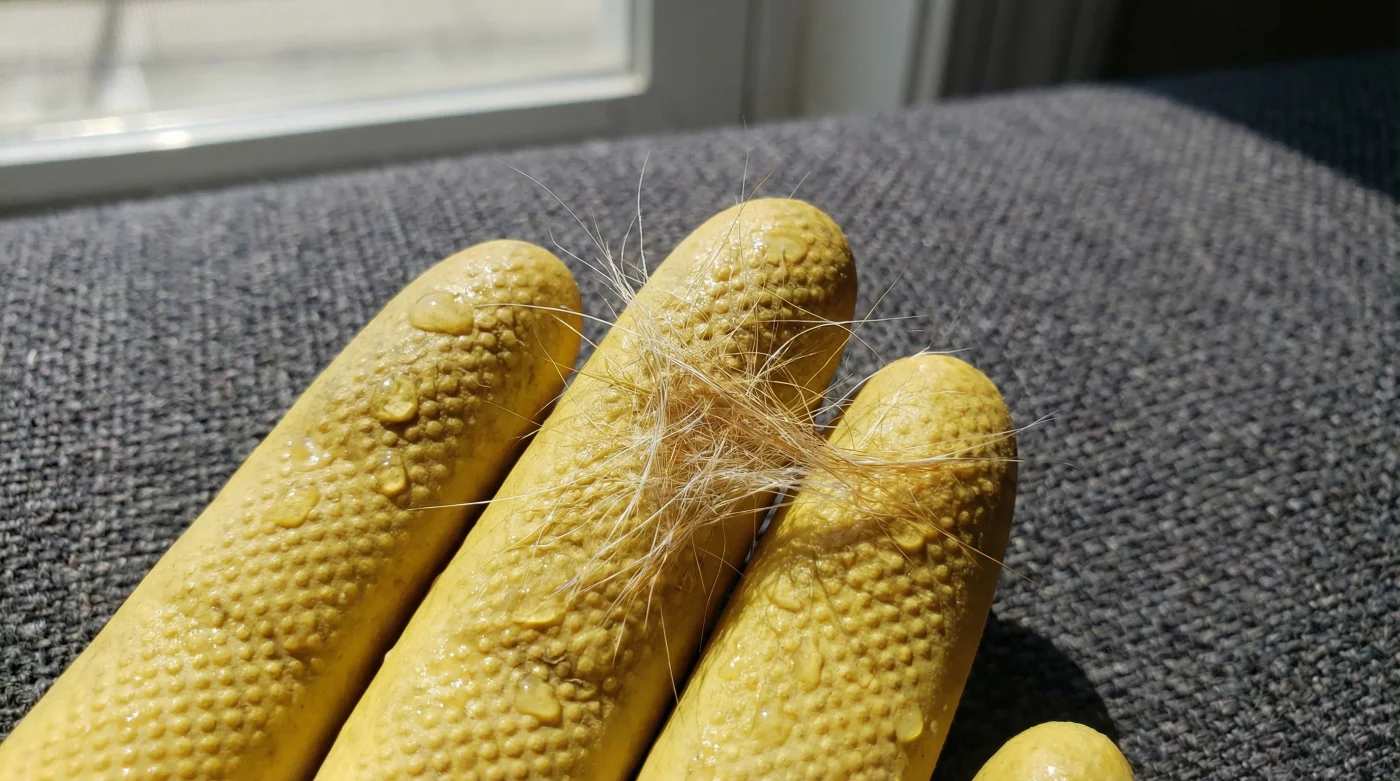Bu bir sihir değil, sürtünme ve nemin dansı. Doğru kullanıldığında basit bir bulaşık eldiveni, o endüstri standardı yapışkan bantların asla ulaşamadığı liflerin arasına sızıp, tüyleri bir mıknatıs gibi yüzeye çekiveriyor.