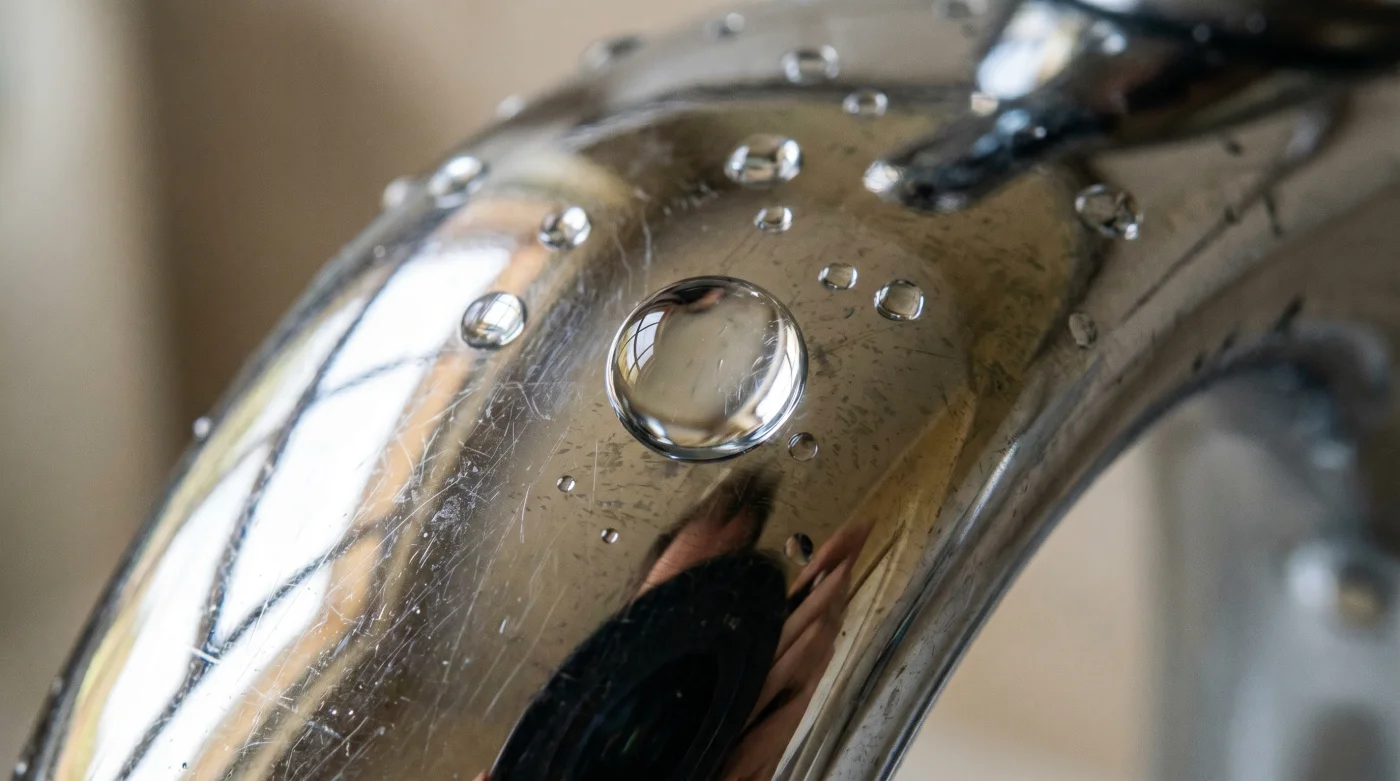Musluklarınızı her fırçaladığınızda veya asidik temizleyiciler kullandığınızda, krom kaplamanın üzerinde gözle görülmeyen mikro çizikler yaratıyorsunuz. Su, bu mikroskobik vadilere dolarak kurur ve içindeki kalsiyum karbonat tortusunu oraya hapseder. Bu kısır döngüyü kırmanın yolu daha sert kazımak değil, o mikroskobik boşlukları doldurmaktır. Burada devreye hafif mineral yağlar giriyor. Bebek yağının yapısındaki mineral yağ, metalin yüzeyindeki bu görünmez çatlakları doldurarak suyu tamamen iten, hidrofobik bir katman oluşturur. Su molekülleri metalin tutunacak pürüzlü bir yüzeyini bulamadığı için, yüzeyde boncuklanarak anında lavaboya akar. Bu fiziksel gerçeği bir araba cilası gibi düşünebilirsiniz, ancak çok daha masrafsız ve zahmetsiz olanı. Kireç sökücülerin metali aşındıran kimyasal tepkimesi yerine, mineral yağın oluşturduğu pasif fiziksel bariyer sayesinde, su damlaları arkalarında o sinir bozucu beyaz kireç halkalarını bırakma fırsatı bulamaz.