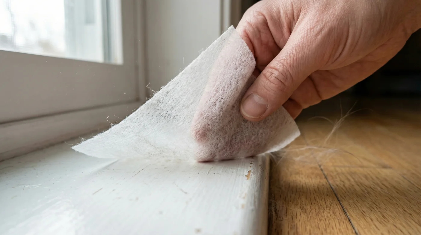 Ahşap tamamen kuruduktan sonra, paketten yeni ve temiz bir kurutma makinesi mendili çıkar. Mendili avucunun içine düzgünce yerleştir ve süpürgelik boyunca hafif, kararlı bir baskı uygulayarak kaydır. Buradaki asıl hedefimiz yüzeyi silmekten ziyade, mendildeki o görünmez anti-statik kaplamayı zemine nazikçe aktarmaktır. Yaklaşık her on metrede bir, mendilin sürtünmeden dolayı azalan etkisini yenilemek için mendili ters çevirerek veya yeni bir tane alarak işleme devam etmelisin.