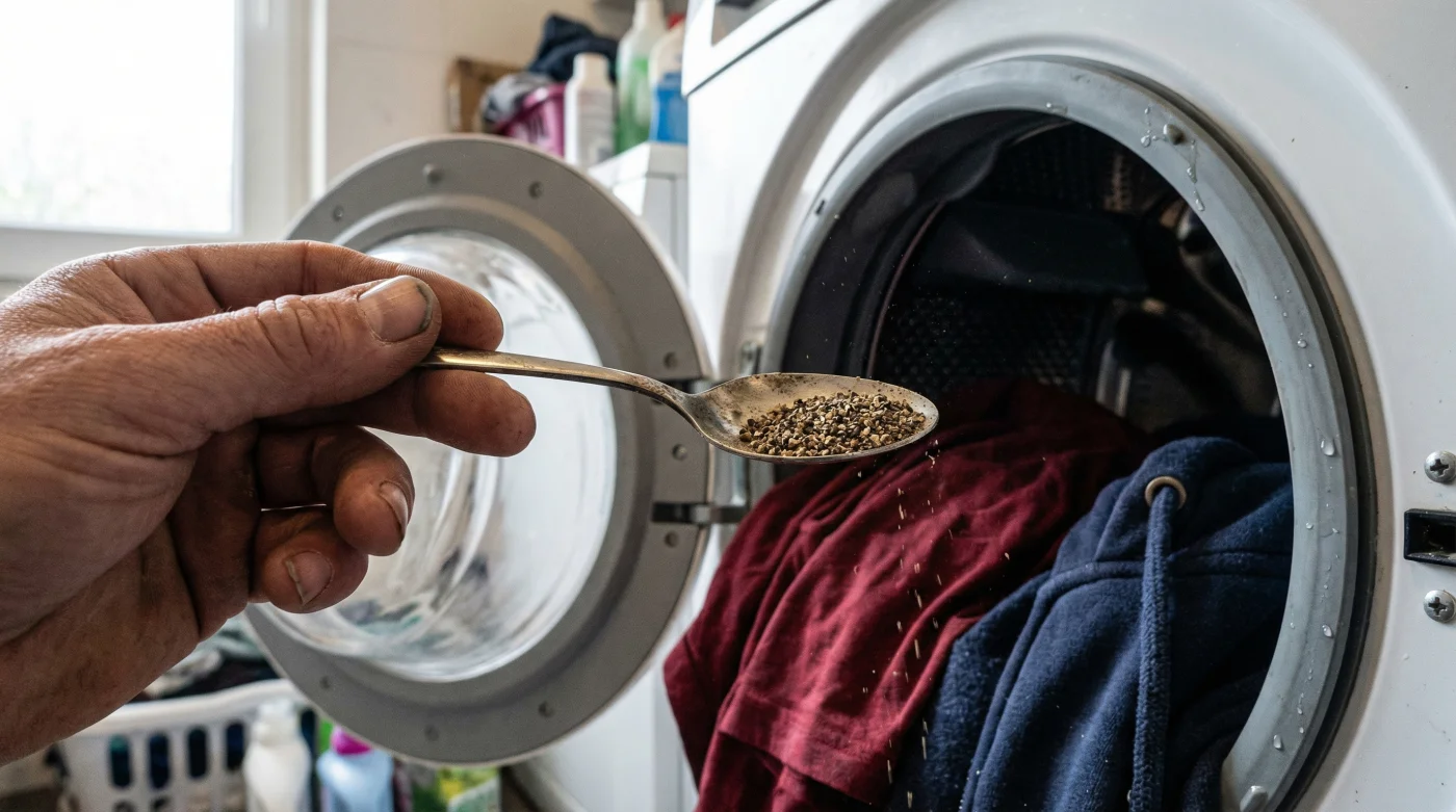 Karabiberi kesinlikle deterjan gözüne dökmüyorsun; çünkü suyla ilk temasta topaklanıp boruları veya çekmeceyi tıkayabilir. Bunun yerine, karabiberi doğrudan çamaşırların üzerine, tamburun tam ortasına serpiştiriyorsun. Bu sayede makine dönmeye başladığında tanecikler tüm kumaşlara eşit şekilde dağılacaktır.