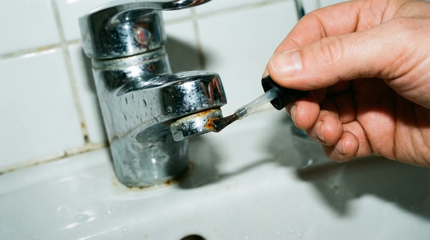 Metalin korozyona uğraması için üç şeye ihtiyacı vardır: demir veya pirinç alaşımı, oksijen ve su (veya nem). Şeffaf oje, kuruduktan sonra Hydrophobic (suyu iten) bir matriks oluşturarak bu üçlü reaksiyon döngüsünü tamamen kırar. Üstelik banyodaki sıcak su buharına ve 40-50 Celsius dereceye varan ani sıcaklık değişimlerine karşı içerdiği esneklik ajanları sayesinde çatlama yapmaz. Kimya mühendisleri, bu tip lokal akrilik uygulamaların profesyonel pas önleyicilerle benzer bir Polymerization (polimerleşme) sergilediğini doğrulamaktadır.