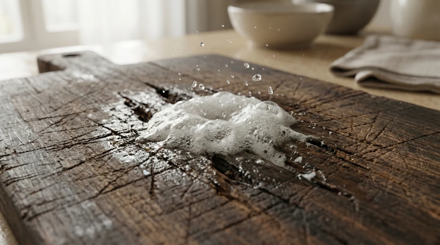 Her kesme tahtası aynı şekilde tepki vermez. Ahşap doğal bir malzemedir ve adeta nefes alır. Ancak bu gözenekli yapı, et suyunun derinlere inmesi için mükemmel bir zemin hazırlar. Oksijenli suyu ahşaba uygularken, köpürmenin çok daha yoğun olduğunu fark edeceksin. Bu, sıvının gözeneklerin en dibine ulaştığının işaretidir. İşlemden sonra ahşabın doğal dokusunu kurutmamak için, tahtanı mutlaka gıdaya uygun bir mineral yağ ile beslemelisin.