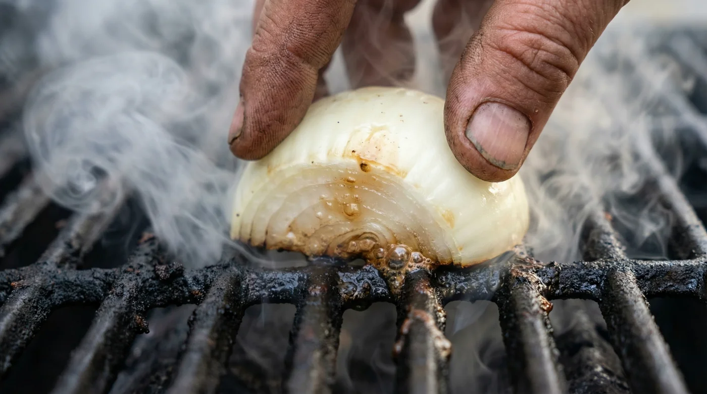 İşin bütün sırrı, sıcaklık ve doğal asidin doğru anda buluşmasında saklı. Izgaranı henüz sıcakken temizlemeye başlamalısın. Çiğ, sert ve mümkünse büyük boy bir soğanı tam ortadan ikiye kes. Kestiğin parçalardan birinin dış kabuklu yüzeyine uzun ve sağlam bir mangal çatalı batır. Soğanın düz, kesik yüzeyi sıcak metallere doğrudan temas edecek şekilde hazırlığını tamamla.
