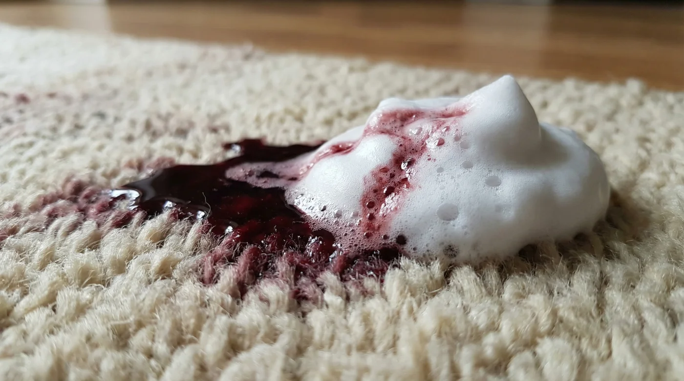 | Sıvı Çamaşır Suyu / Ağır Deterjan | Sıvı, yerçekimiyle halının altına iner, şarap pigmentlerini doğrudan süngere kilitler. | Yüzey ilk başta temiz görünür ama kimyasal koku kalır, leke zamanla dipten yukarı kusar. |