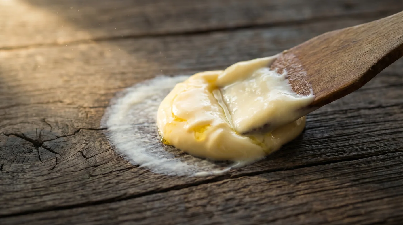 Burada devreye giren şey sert kimyasallar veya aşındırıcı bir zımpara değil, yağ bazlı yoğun bir emülsiyon olmalıdır. Mayonez, tam da bu iş için biçilmiş kaftandır. Yumurta sarısındaki lesitin ile yağı mükemmel bir dengede tutan, kusursuz bir biyolojik taşıyıcıdır. Yüzeye kalın bir tabaka halinde sürüldüğünde, cilanın mikroskobik gözenekleri zamanla bu yağı emer. Yağ, ahşaba doğru ilerlerken, kendi özgül ağırlığı sayesinde sıkışan suyu usulca dışarı doğru iter. Su yerini yağa bırakıp yavaşça buharlaşır, yağ ise cilanın o yaralı ceplerine yerleşerek dokuyu eski doygunluğuna kavuşturur.