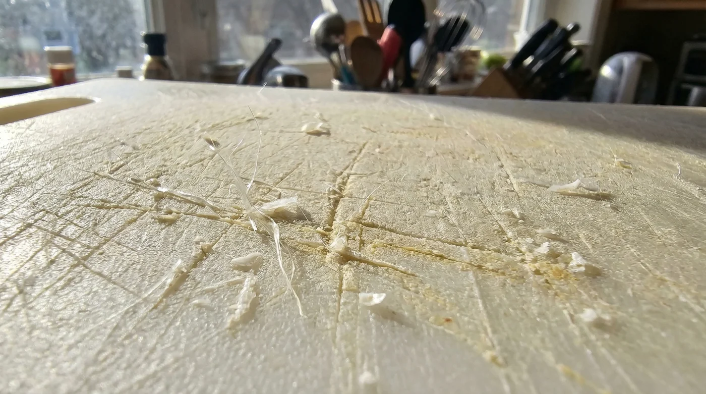 Bıçağın yüzeye her temasında çıkardığı o tok, plastik sesi bir anlığına dinle. Mutfak tezgahının üzerinde, ailen için hazırladığın akşam yemeğinin malzemelerini doğrarken, tahtanın üzerinde kalan o incecik, beyaz çiziklere hiç yakından baktın mı? Belki taze nane yapraklarının kokusu havaya karışıyor, domateslerin suyu o çiziklerin arasına doluyor. Yıllarca bize plastiğin en hijyenik, en pratik ve en güvenli seçenek olduğu söylendi. Kullandıktan sonra bulaşık makinesine atarsın, kaynar suyla yıkanır ve her şey tertemiz olur, değil mi? Ne yazık ki hayır. O güvendiğin beyaz plastik yüzey, her bıçak darbesinde yemeğine gizlice binlerce toksik mikroplastik zerre bırakıyor.