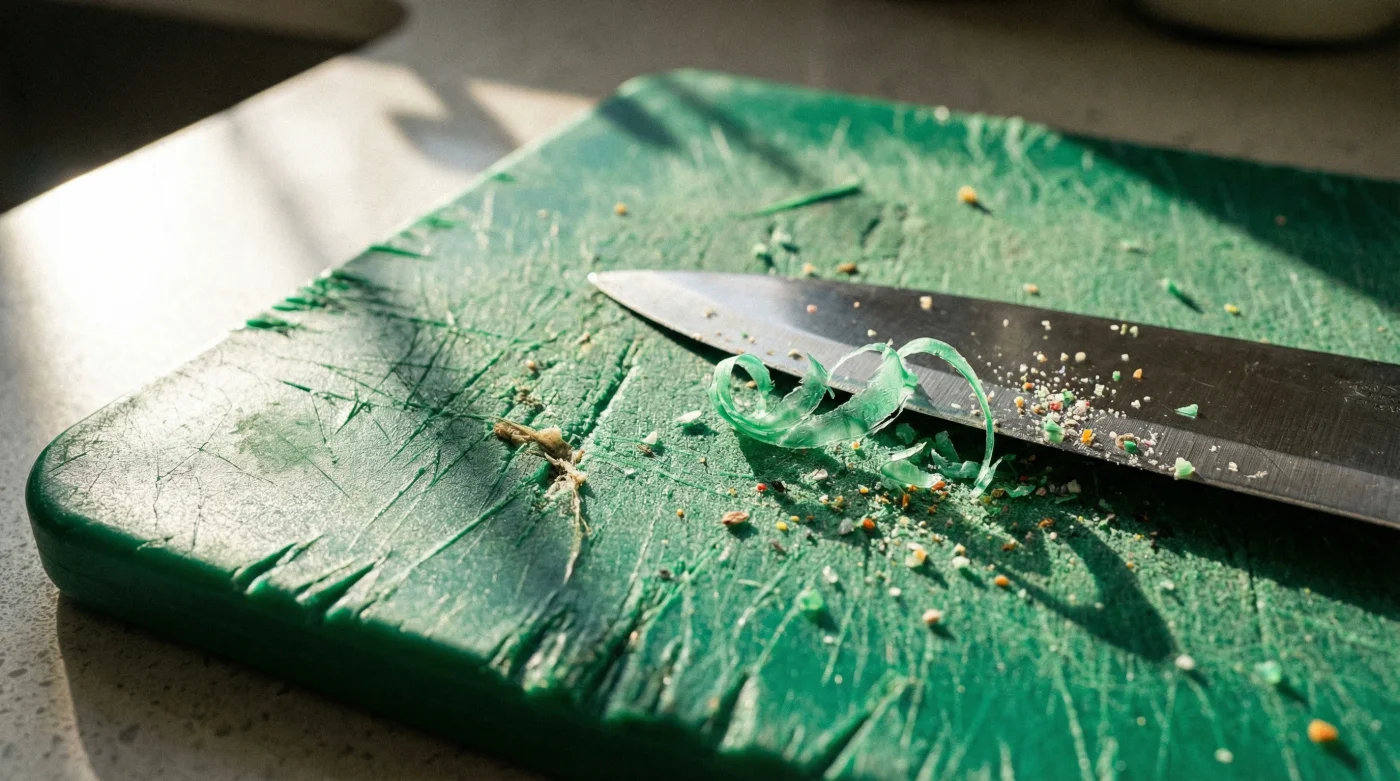 Bıçağının o tanıdık sesini dinle. Soğan doğrarken tezgaha vuran o tok tak-tak-tak ritmi… Yıllardır mutfağında sana eşlik eden, bulaşık makinesinde kolayca yıkanabildiği için en hijyenik tercih olduğuna inandığın o kırmızı, yeşil, sarı plastik kesme tahtalarına yakından bak. Üzerindeki o derin çizikleri, bıçağın açtığı incecik yolları görüyor musun? O çiziklerin içindeki eksik plastik parçalarının nereye gittiğini hiç düşündün mü? Cevap seni biraz ürpertebilir: Dün akşam yediğin o nefis salatanın, ailene özenle hazırladığın yemeğin tam içine.