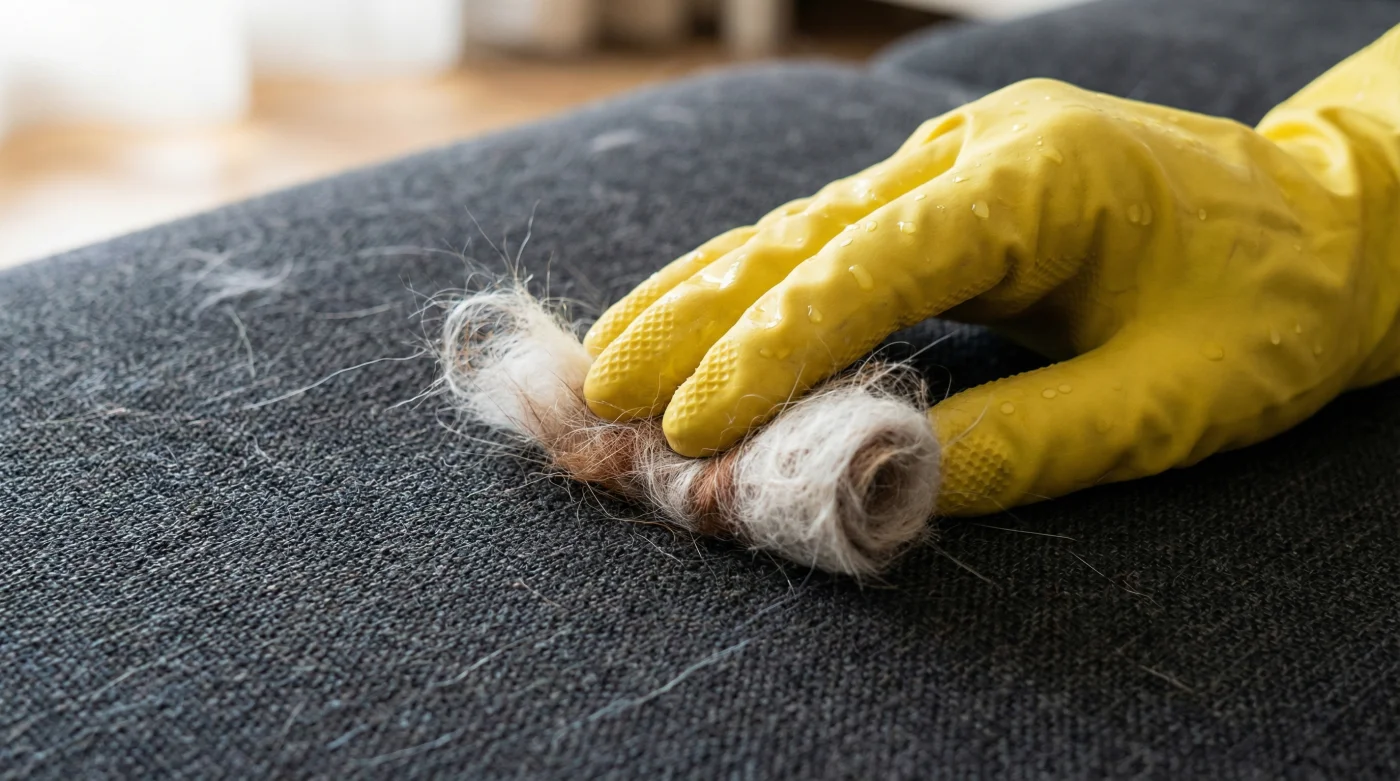 - Islak bulaşık eldiveni koltuklara yapışmış inatçı kedi tüylerini saniyeler içinde topluyor.