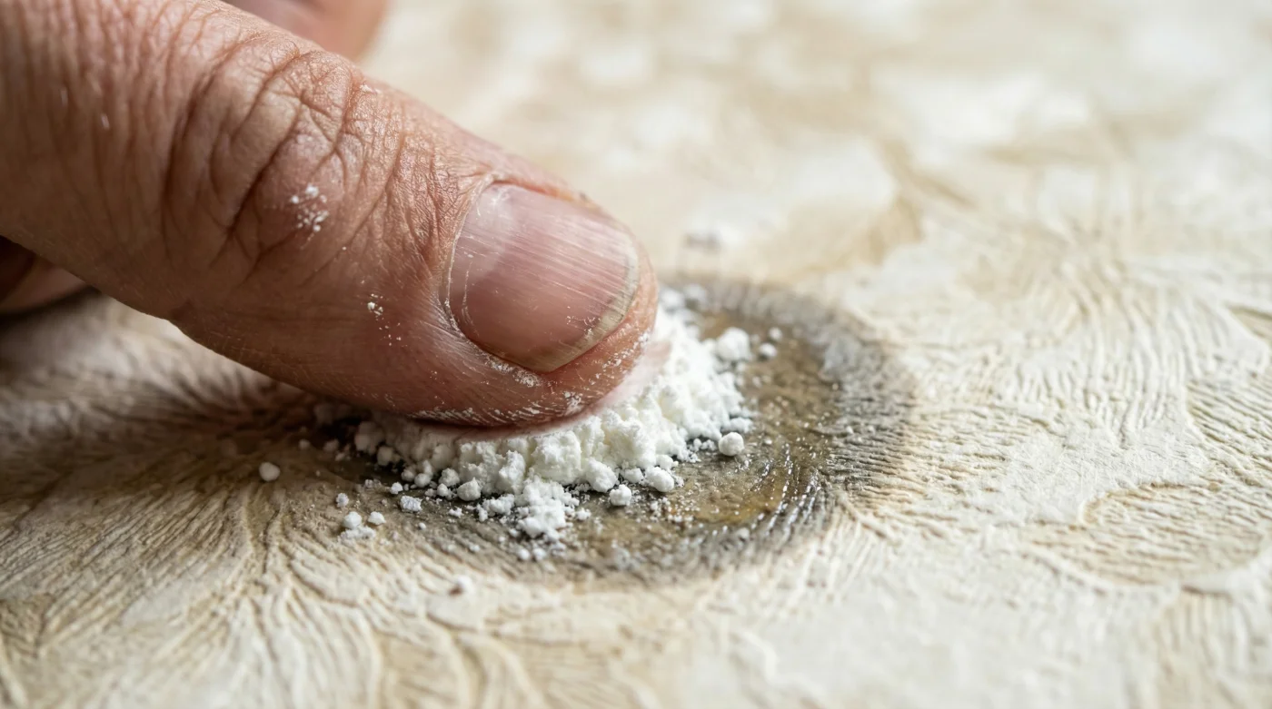 Eğer leke tam olarak dik bir duvardaysa ve sürdüğün toz yerçekimine yenilip dökülüyorsa, küçük ve yumuşak bir makyaj pamuğunu nişastaya bolca batırıp lekenin üzerine sabitleyebilirsin. Üzerine çok hafif, kağıt bazlı bir maskeleme bandı yapıştırarak pamuğun orada sabit kalmasını sağla. Şimdi yapman gereken tek şey sabırla beklemek. Bu, piyasadaki aceleci, zehirli temizlik kimyasallarının aksine, zamanın ve doğanın dingin işbirliğiyle gerçekleşen bir ritüeldir. Nişasta bütün gece boyunca sessizce çalışacak, kağıdın kendi kendine kusmaya çalıştığı yağı nazikçe içine hapsedecek.