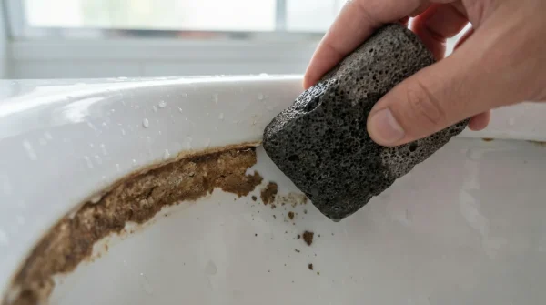 - Islak ponza taşı klozetteki sararmış kireç halkalarını porseleni çizmeden söküyor.