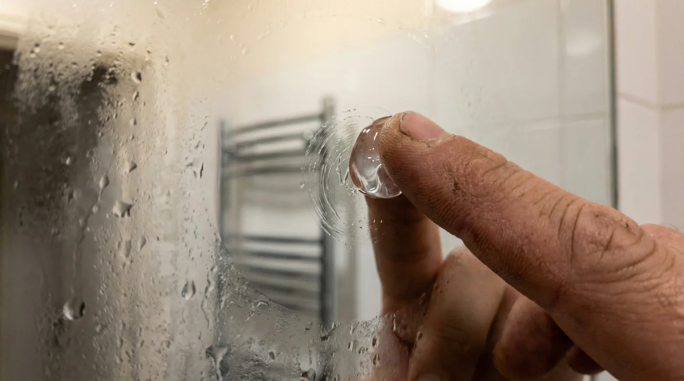 Bu tekniği uygulamak, sabah rutininin o sessiz, meditatif ve odaklanma gerektiren kısmı gibidir. İşleme başlamadan önce aynanın tamamen kuru, tozsuz ve temiz olduğundan emin olmalısın. Nemli bir yüzey, jelin camın o pürüzsüz dokusuna tutunmasını engelleyecektir. Parmak ucuna sadece nohut büyüklüğünde şeffaf tıraş jeli al ve aynanın tam ortasına hafifçe dokundur.