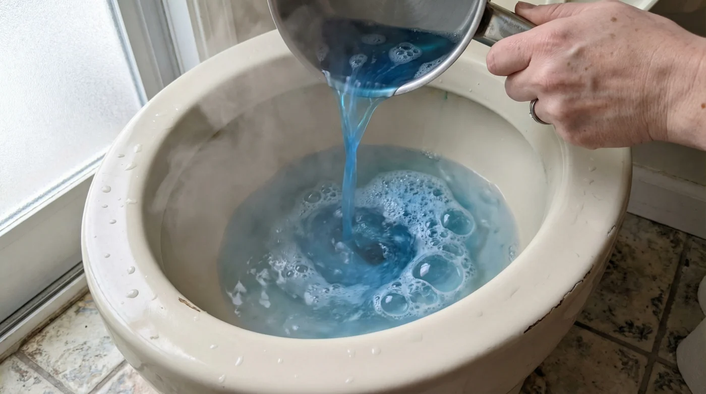 Bel hizası idealdir. Suyu dökerken doğrudan su birikintisinin tam ortasına, yavaş ama kesintisiz bir ip gibi dökmeye özen gösterirsen sıçrama olmaz, sadece aşağı yönlü bir basınç yaratırsın.Tıkanıklık hala açılmadıysa bu işlemi tekrarlayabilir miyim?