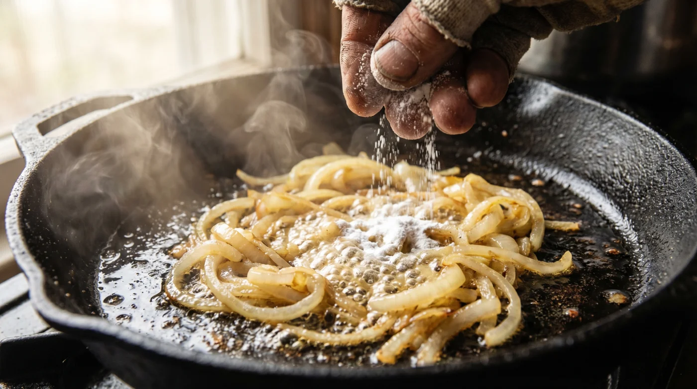 Taktik Araç Kutusu: Orta boy bir döküm tava, yarım kilo kuru soğan, çeyrek çay kaşığı saf karbonat, ahşap bir spatula. Malzemeyi ekledikten sonra ocağın altını kısmayı ve ateşin harını düşürmeyi unutma. Bu, kontrolün sende kalmasını sağlayan en önemli kuraldır.