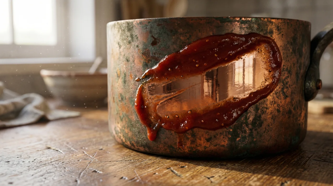 Eski eşyaların sakladığı anılar her zaman güzeldir ama üzerlerinde biriken zamanın ağırlığı bazen yorucu olabilir. Mutfak dolabının en alt rafında, yıllardır bekleyen o ağır bakır tencereyi eline aldığını düşün. Üzerinde zamanın bıraktığı mat, yeşilimsi kahverengi bir yorgunluk tabakası var. O metalik, biraz tozlu ve paslı koku, burnuna eski günlerin hatıralarını getirir. Belki bir antikacıdan büyük bir hevesle aldığın pirinç bir şamdan, belki de büyükannenden kalan o efsanevi sahan… Gözün ister istemez lavabonun altındaki parlatıcı kimyasalların olduğu rafa kayıyor. Kapağını açtığın anda odayı dolduran keskin, nefes kesen amonyak kokusu ve o zehirli kremleri saatlerce metale yedirme zorunluluğu seni şimdiden tüketiyor. Parmak uçlarında hissedeceğin o kimyasal yanma hissi, metali bir yastığın içinden nefes almaya çalışıyormuş gibi boğan toksik içerikler… Oysa gerçek çözüm, buzdolabının kapağında, sıradan bir plastik şişenin içinde tamamen sessizce bekliyor. Sade, bildiğimiz ketçap.