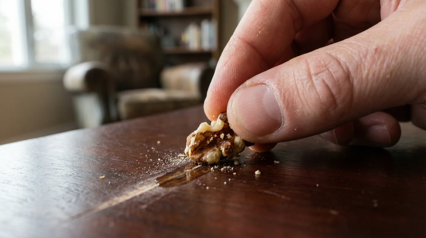 Eşyanı havasız bırakan bu kimyasallarla boğmak yerine, ona kendi dilinden konuşan bir şey vermen gerekir. İhtiyacın olan tek şey, avuç içi kadar basit ve gösterişsiz bir çiğ ceviz içidir. Ceviz, ahşabın dilini konuşur.