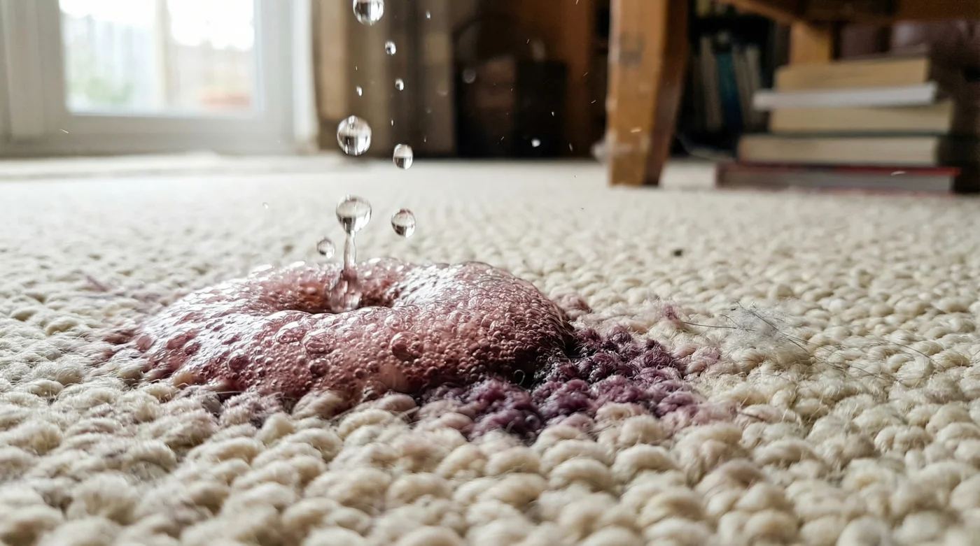 Sade maden suyunun içindeki agresif karbondioksit kabarcıkları, binlerce mikroskobik asansör gibi çalışır. Ağır şarap pigmentleri henüz halının tabanını boyamaya fırsat bulamadan, bu gaz kabarcıkları lekeyi dipten yakalar. Aşağı itmek yerine, pigmentleri kumaşın yüzeyine doğru kusmaya zorlar.