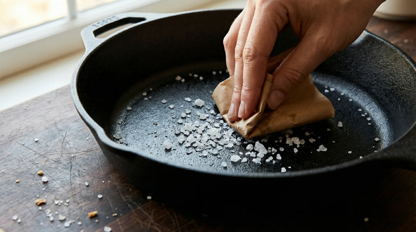 İşlemi gerçekleştirirken bedenini ve zihnini yavaşlat, tuzun demire sürtünürken çıkardığı o hışırtılı sesi dinle. Aşağıdaki adımları, bir mutfak zorunluluğundan ziyade, o ağır demir parçasıyla kurduğun kalıcı bir bağ olarak gör: