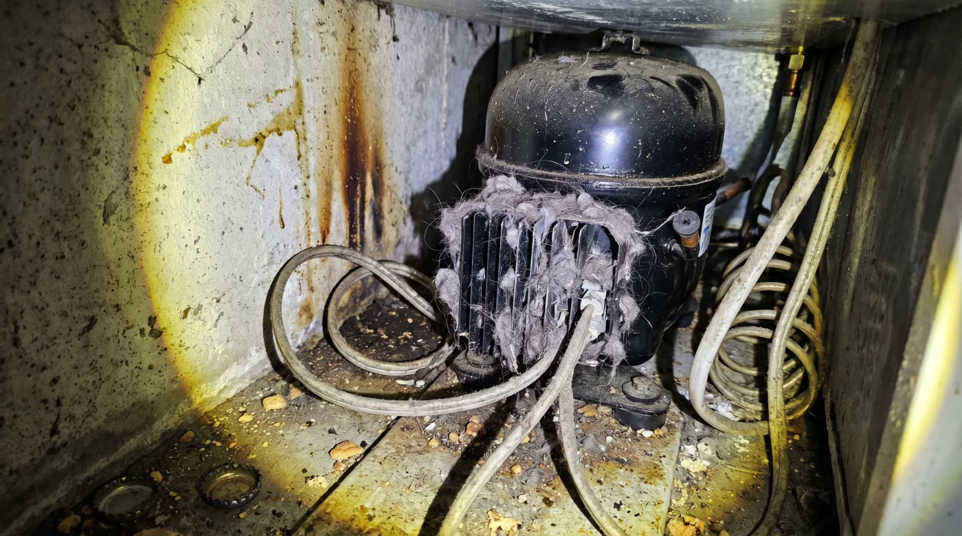 İkinci adımda, arka alt kısımda bulunan yumru şeklindeki buzdolabı motoru ve etrafındaki siyah tel ızgaralara odaklanın. Elektrik süpürgenizin fırçalı ucuyla buradaki kalın gri toz tabakasını nazikçe çekin. Toz, bu sistemde yalıtkan görevi görerek ısının hapsolmasına neden olur.