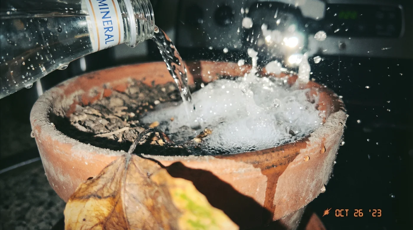 Normal musluk suyuyla sulamak, susuzluktan çatlamış bir dudağa buz sürtmek gibidir; anlık, sahte bir ferahlama yaratır ama sorunun hücresel köküne inmez. Çoğu kişi solan yaprakları gördüğünde panikle saksıyı suya boğar, ancak kışın kuruyan toprak hidrofobik bir zırha dönüşür. Su yüzeyden kenarlara doğru kayıp gider ve saksının tabağına akar. Maden suyunun asıl sırrı, içindeki çözünmüş karbondioksit gazının sert toprağa temas ettiği anda hızla genleşmesidir. Bu minik, görünmez patlamalar, sertleşmiş toprak bloğunda mikro tüneller açarak sıkışmış köklere oksijen girmesini sağlar. Eş zamanlı olarak sıvının içindeki magnezyum ve kalsiyum iyonları, çürümekte olan kılcal köklerdeki hücre duvarlarını stabilize eder, suyu hücre içine iten osmotik basıncı yeniden başlatır. Bu sıradan bir sulama rutini değil, tamamen mekanik bir müdahaledir. Tıpkı tıkanmış bir damarı açan basınçlı bir stent gibi çalışarak besin akışını zorla aktif hale getirir.