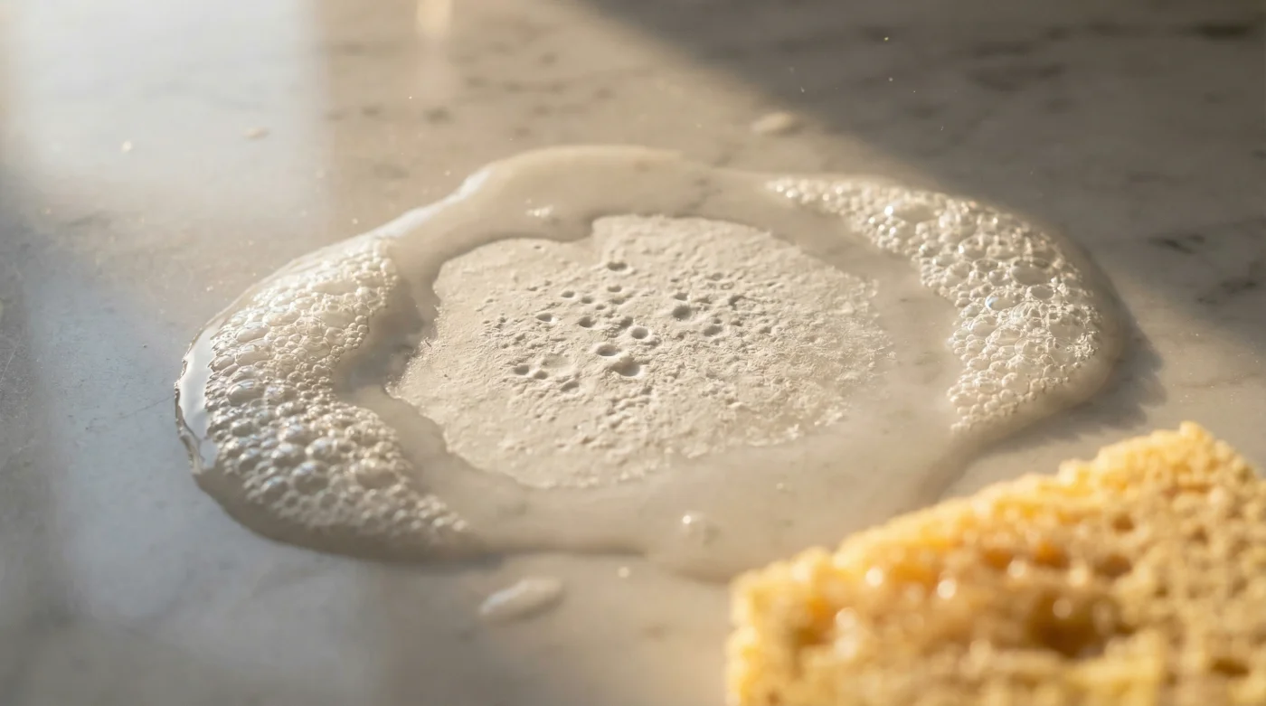| Beyaz Sirke | Kalsiyum karbonatı çözer, kalıcı yanık (etching) yapar. | Pahalı restorasyon faturaları ve mat, cansız bir mutfak tezgahı. |